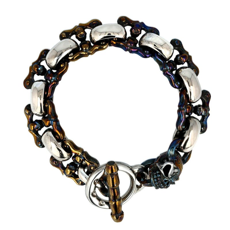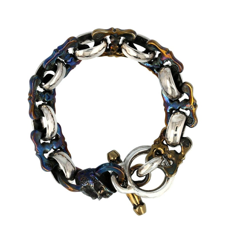 新作のパズルスカルより今度はコバルトとのコンビネーションブレスレットが登場!フェイスの1ポイントをポリッシングする事で色味の違いを演出、全体をシルバーとコバルトのコンビネーションで仕上げている。デザイナーのアイデアによるバランス抜群のコンビネーションカスタムブレスレット。