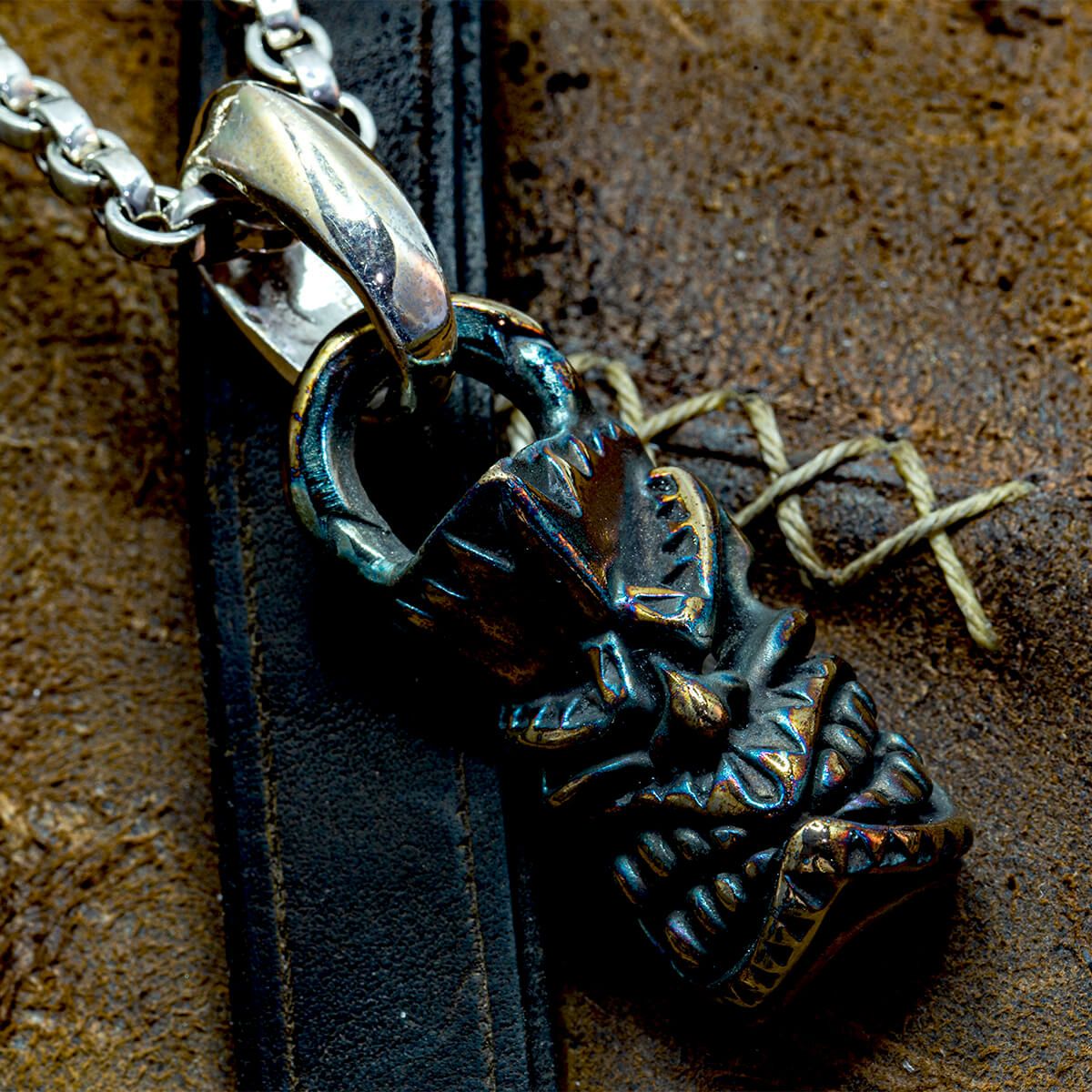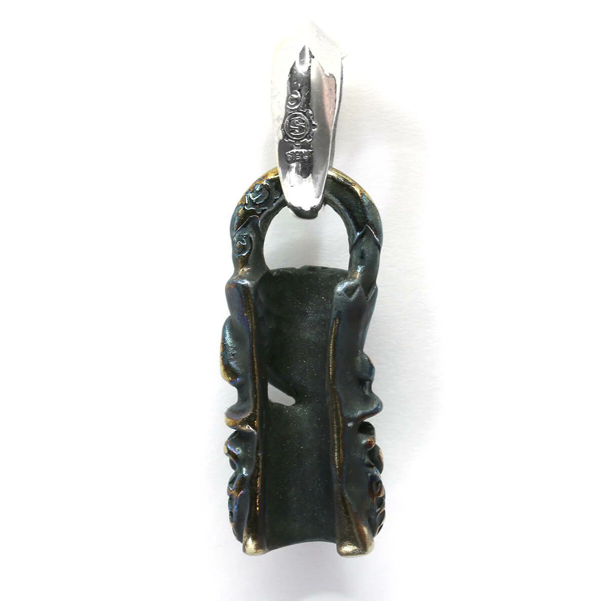 トップをコバルト、チェーンを通すバチカンをシルバー作ったコンビネーションペンダント。