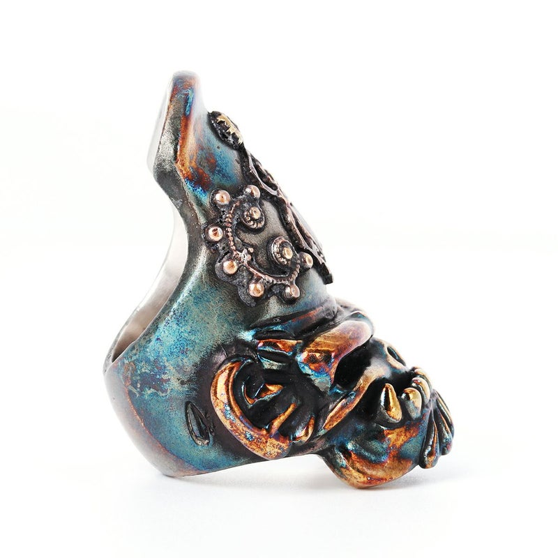 マザーファッカーやSOBに続くワンオフシリーズリングにモンキーモチーフが仲間入り!従来のモンキーとは表情が異なり、長いハットを被った彼ら掃除人=始末者を意味する。その意味からとても怪しげな表情をしており、長いハットは相手を威嚇する。そんなハットにはアンティークパーツがアタッチされており他と同じデザインは2個ないのも特徴だ。