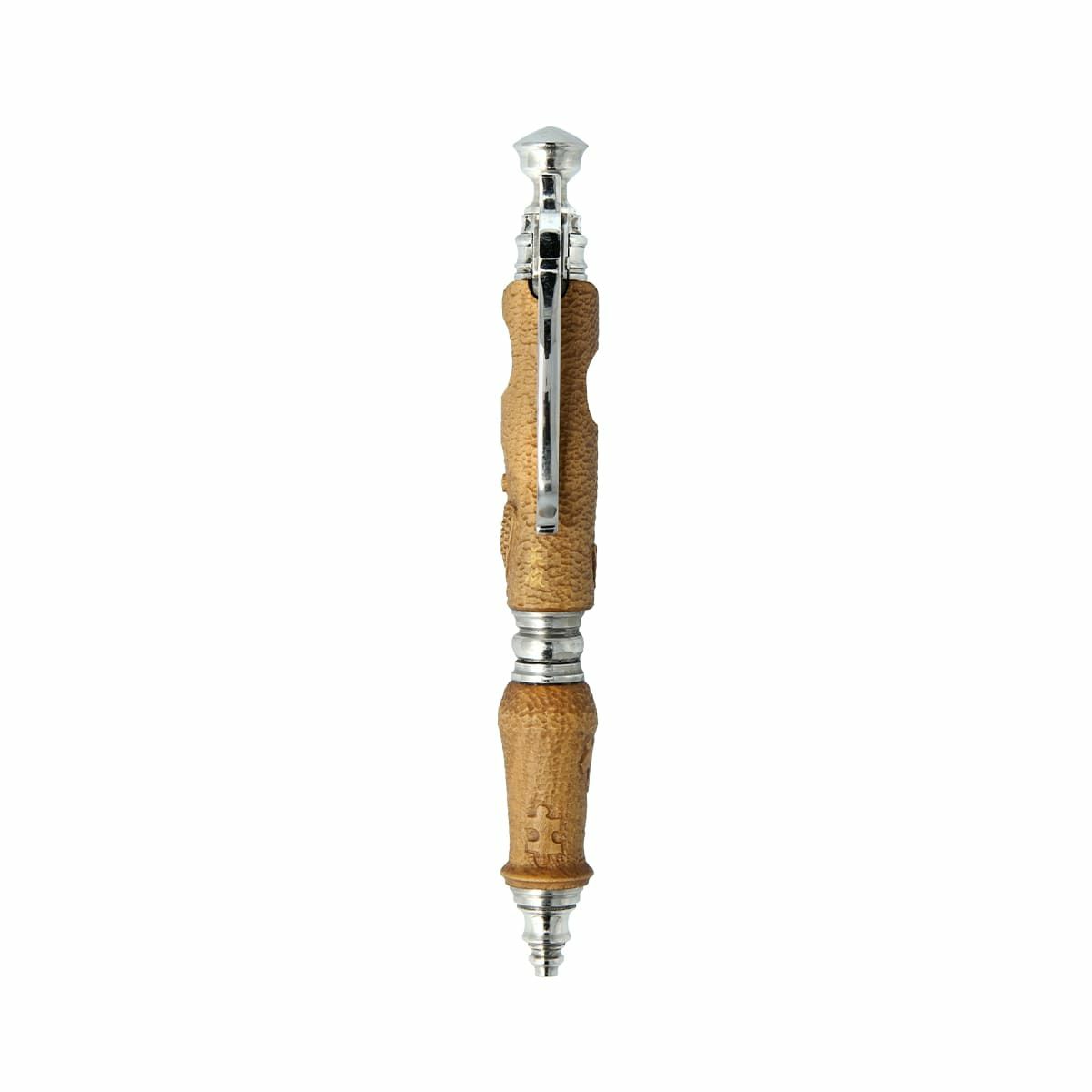 新作として発表されたパズルスリックスターをフィーチャーしたボルトアクションボールペンのタイプ・が登場。全てハンドメイドで作られており、パズルのピースが無数に飛び散った様を表現している。よく見てみるとスカルの口の部分があったり目の部分があったりととてもユニークなアイデアが満載。木材はつげの木を使用することで柔らかみある色となっている。