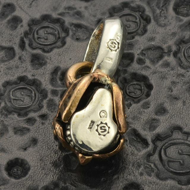 刻印の位置はランダムになります。刻印位置の指定はいただけません。ヴァイキング時代に海賊が使用した兜を被ったスカルペンダント。兜もスターリンギアの特徴的な表情に合わせて歪めているのが特徴。
