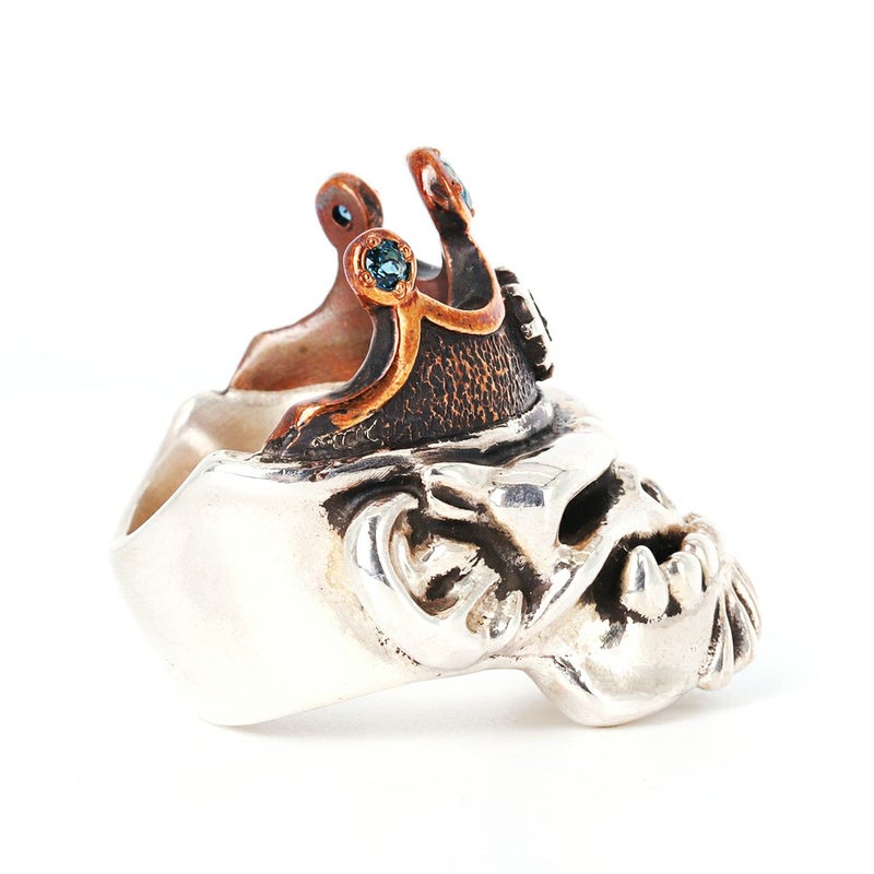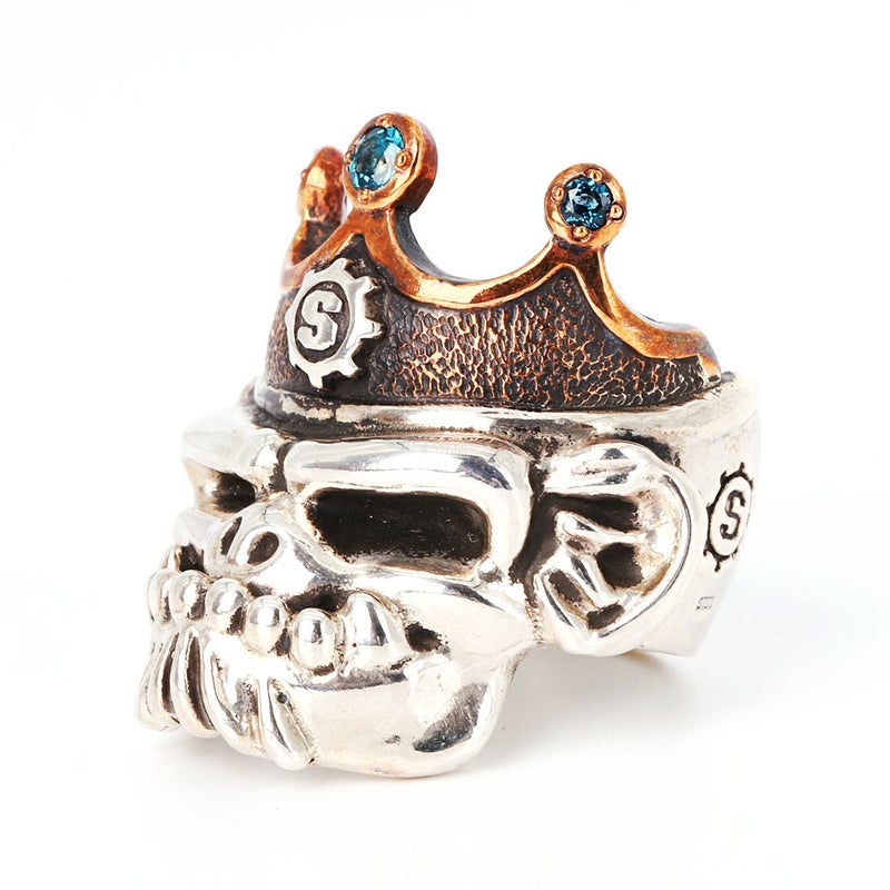 【ワンオフ・カスタムアイテム】 スターリンギア パンチャーハウラーキングリング w/カスタムワンオフ/コパークラウン&シルバーSギアロゴ/3ブルートパーズ