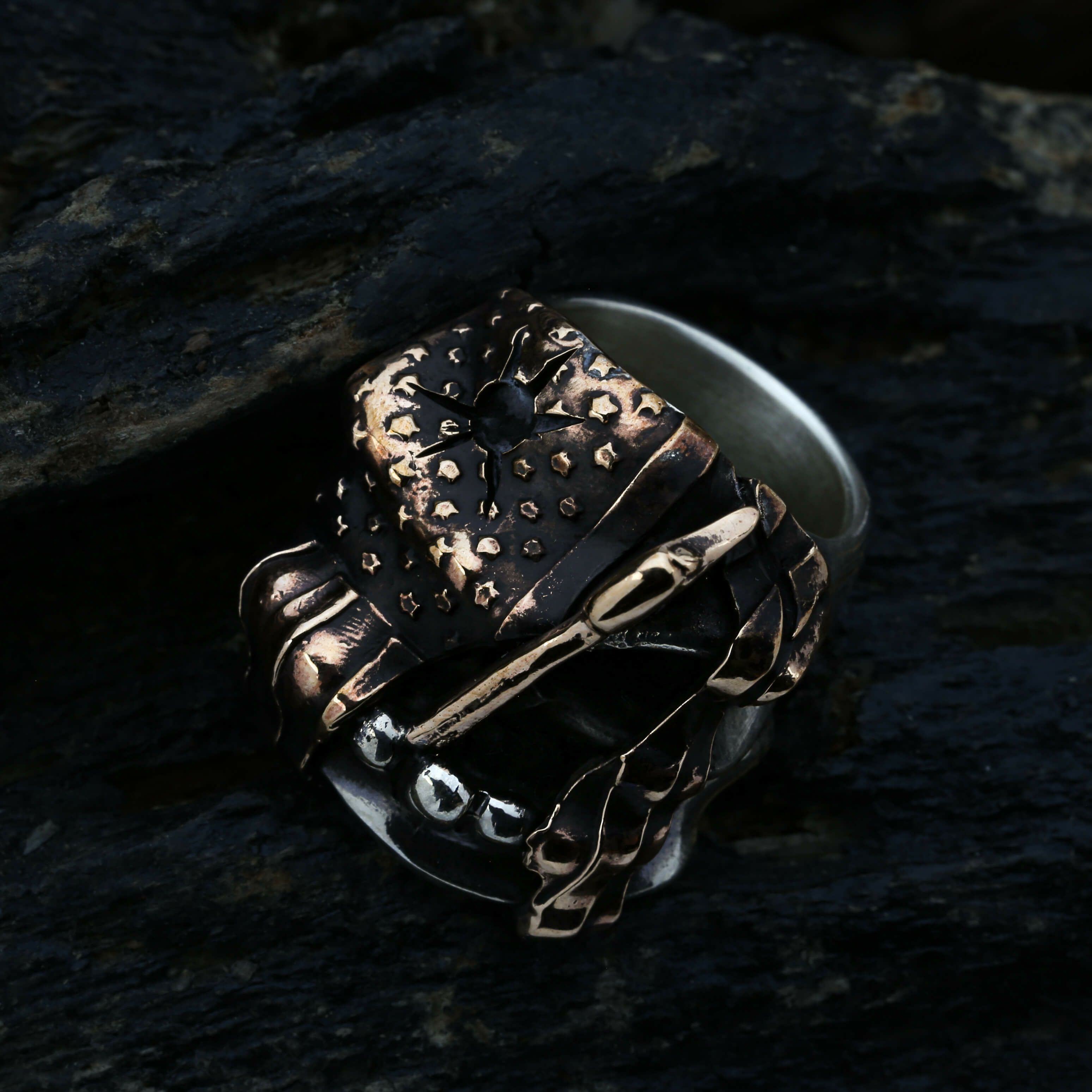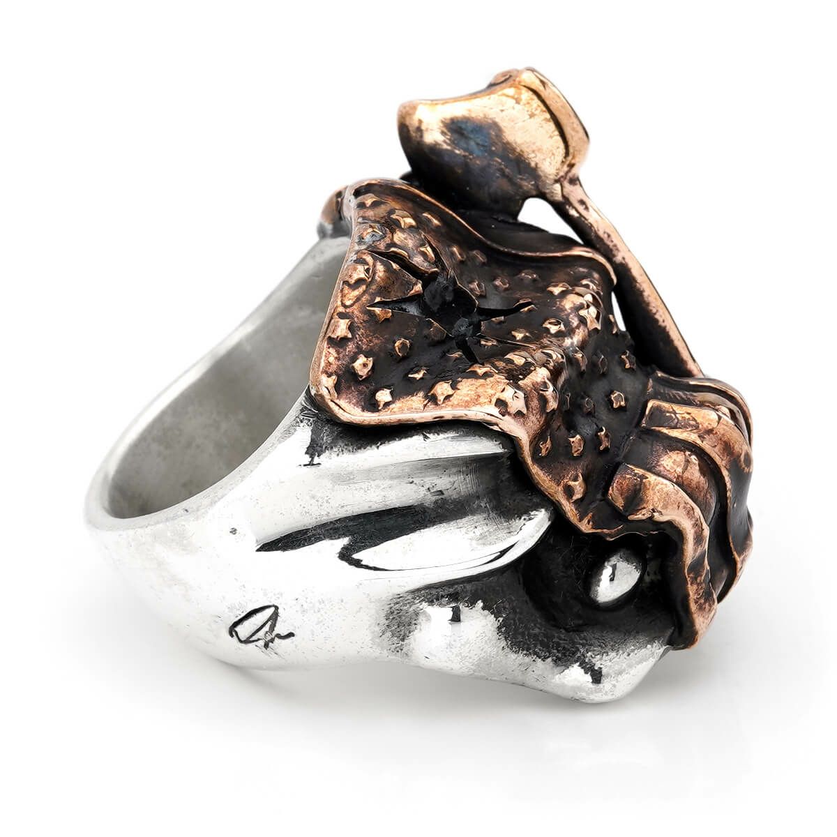 【日本限定&カスタム】 スターリンギア パンチャーニューブルーザーリングw/フラッグフェイス/コパーアメリカンフラッグ/コパーアックス/バレットホール(s000121587)【リングサイズUS10.5(日本サイズ約23号)】