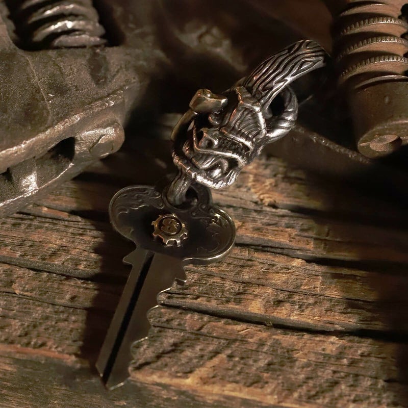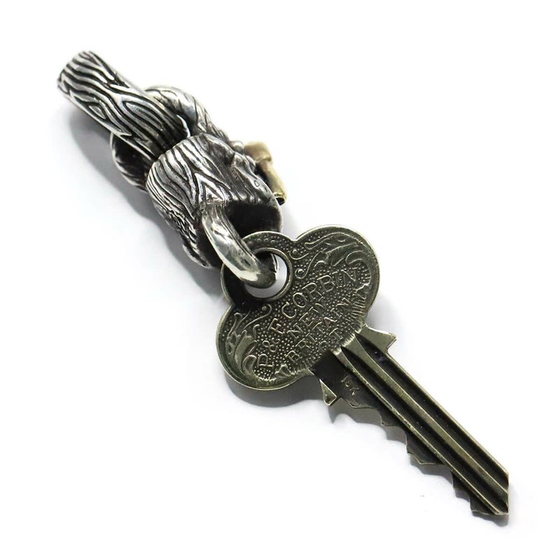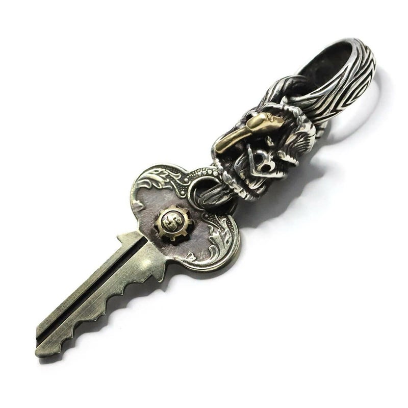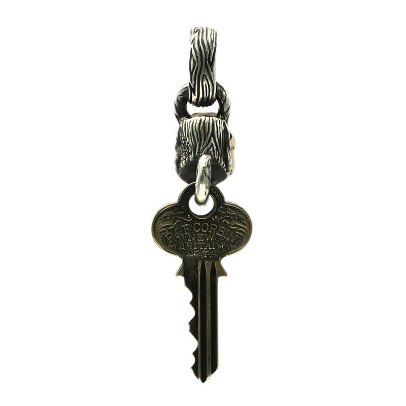 本物のカギ(アンティーク)をエンドパーツにアタッチメントしたペンダント。同じ形のカギは2個とない。アックス、Sギアロゴは18金イエローゴールドのスペシャルカスタム品