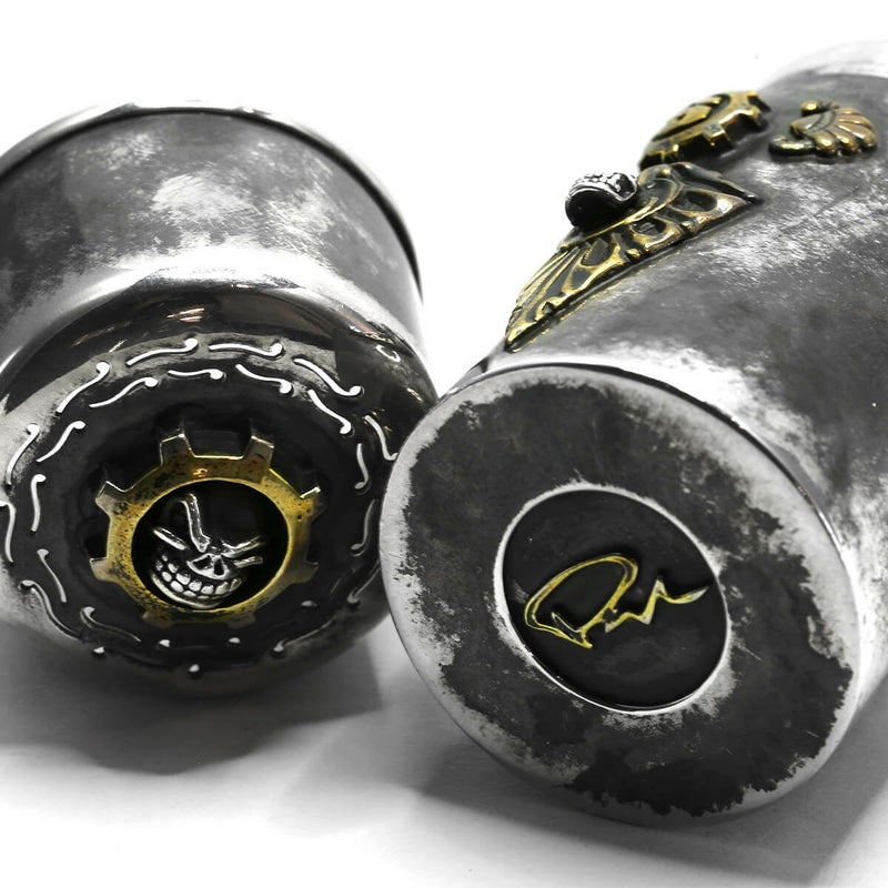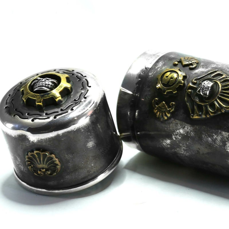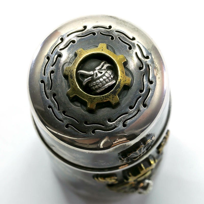 スターリンギア 【カスタム】1920年製アンティークシルバーラウンドショートシガーチューブティファニー&コー w/スカルギア&タイニースカル&ブラスアンティークパーツ&Sギアロゴカスタム