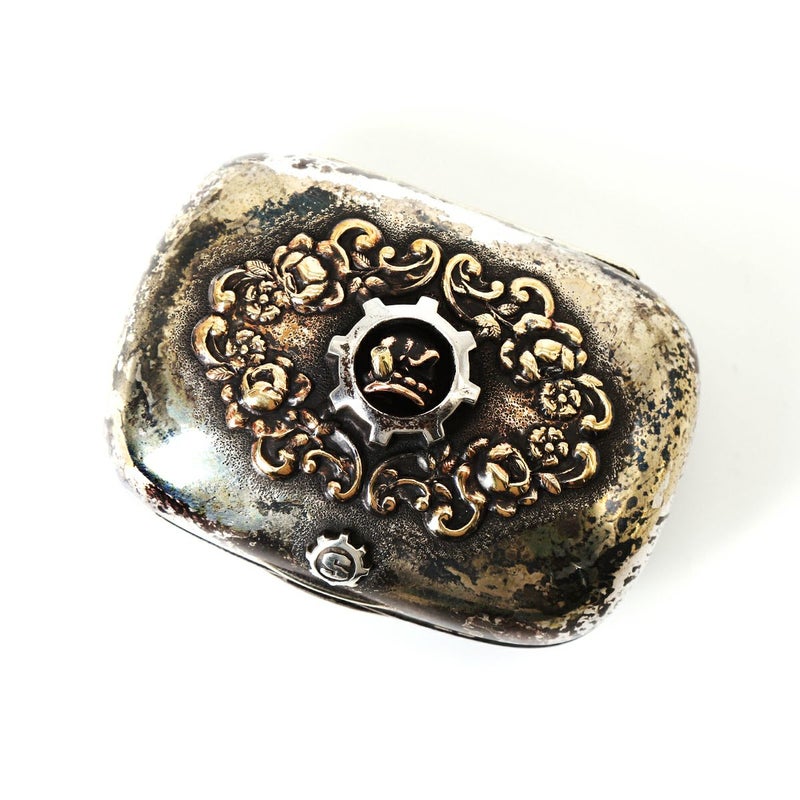 1900年に作られたティファニーオリジナルの石鹸バートラベルケース。昔は固形石鹸であったため旅行には必ず専用ケースが必要であった時代の背景からティファニーがシルバーでケースを作っていた。オリジナルが持つ古き良き表現を保ちつつ、スターリンギアのオリジナルパーツとアンティークパーツでアタッチメントを仕上げた究極の一品。