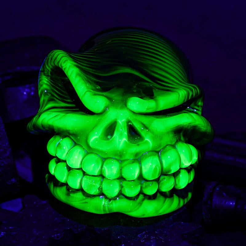 ウランガラスとは、ガラス原料に微量のウランを混ぜて着色剤として使用したガラスのこと。主に黄色や緑色だが、紫外線(ブラックライト)を照射すると美しい蛍光を発する。