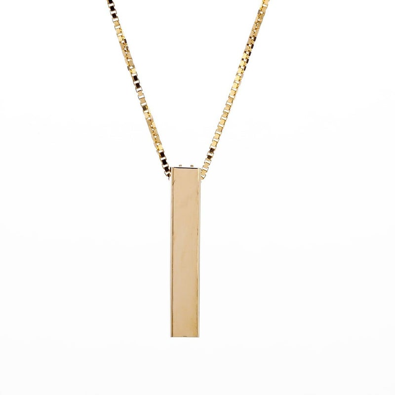 一見するとイニシャルペンダントには見えないスティック状のデザインが特徴。イニシャルの形状をスティック状にする技法はとても繊細で高度な技術を要し、一点一点職人の手によって生み出されています。