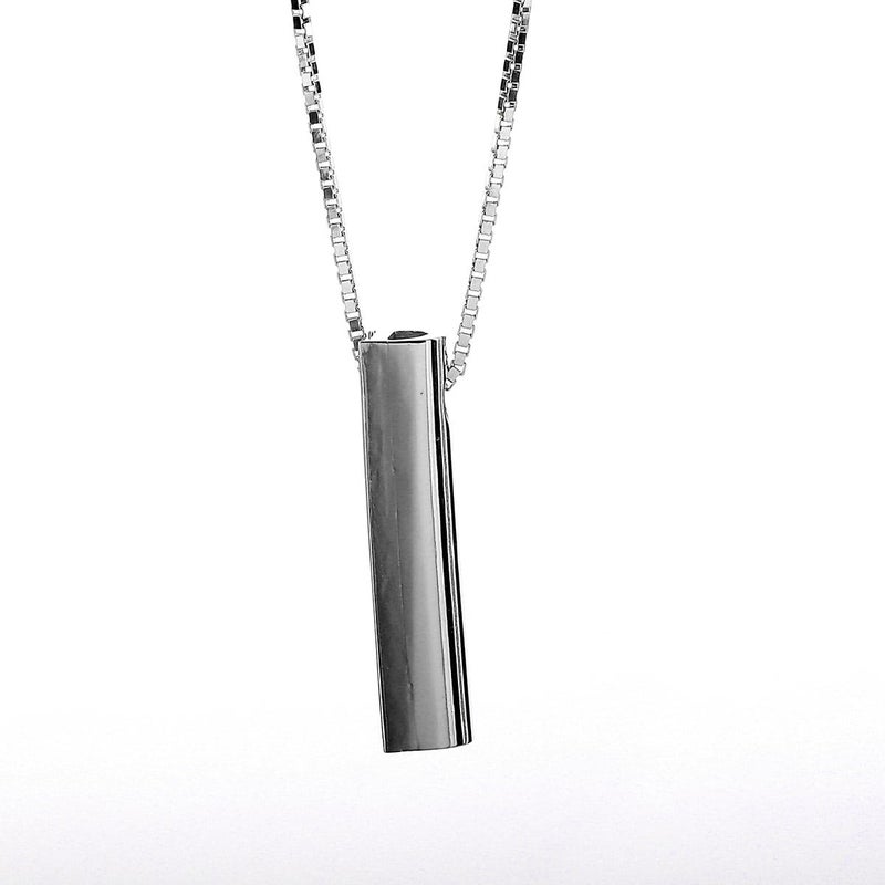一見するとイニシャルペンダントには見えないスティック状のデザインが特徴。イニシャルの形状をスティック状にする技法はとても繊細で高度な技術を要し、一点一点職人の手によって生み出されています。