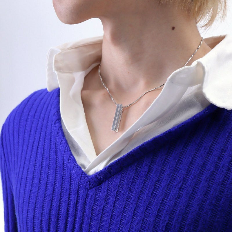 一見するとイニシャルペンダントには見えないスティック状のデザインが特徴。イニシャルの形状をスティック状にする技法はとても繊細で高度な技術を要し、一点一点職人の手によって生み出されています。