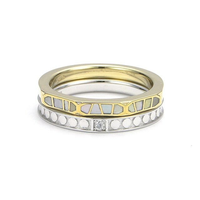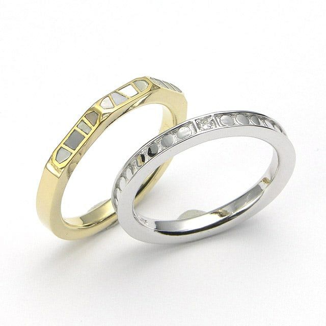 グエル公園にあるモザイク柄と丸模様を一つにした2連リングになります。細いながらもシェルの光沢感と幾何学模様にも見える丸柄が特徴です。