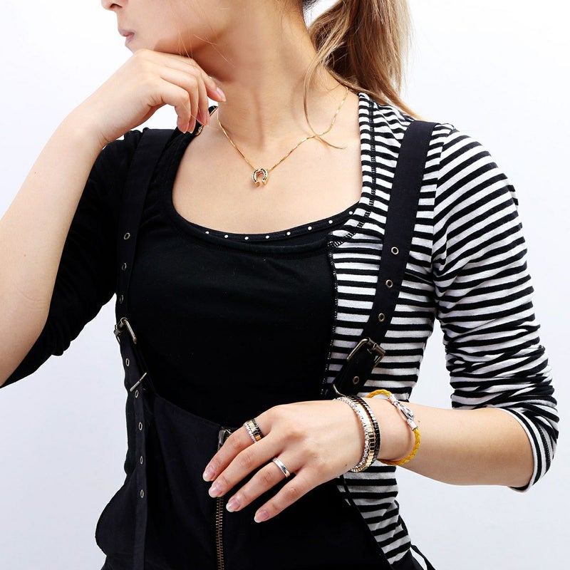 高さ16mm、幅14mm、厚み4.5mm、重さ約4.6g(トップのみ)、チェーン長さ~49cm、重さ約4g(アジャスター調整可・取り外し不可)