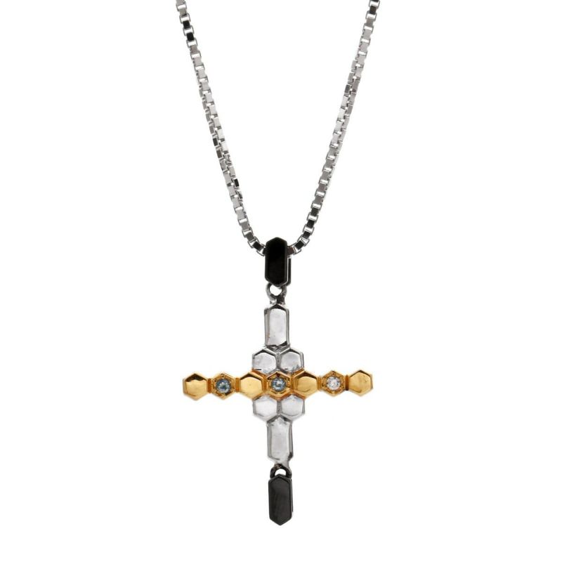 ヴェルヴェットラウンジ Swage block スウェージブロックペンダント/ホワイト&ゴールド/ホワイトキュービックジルコニア