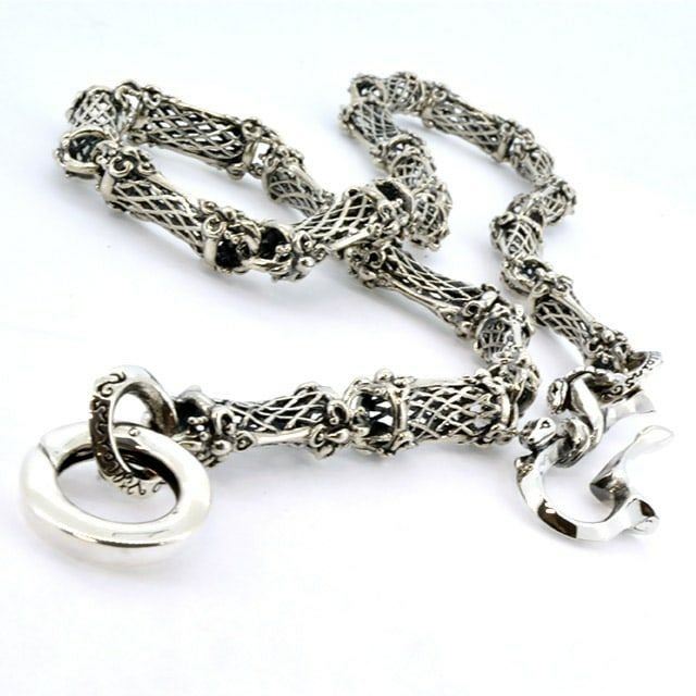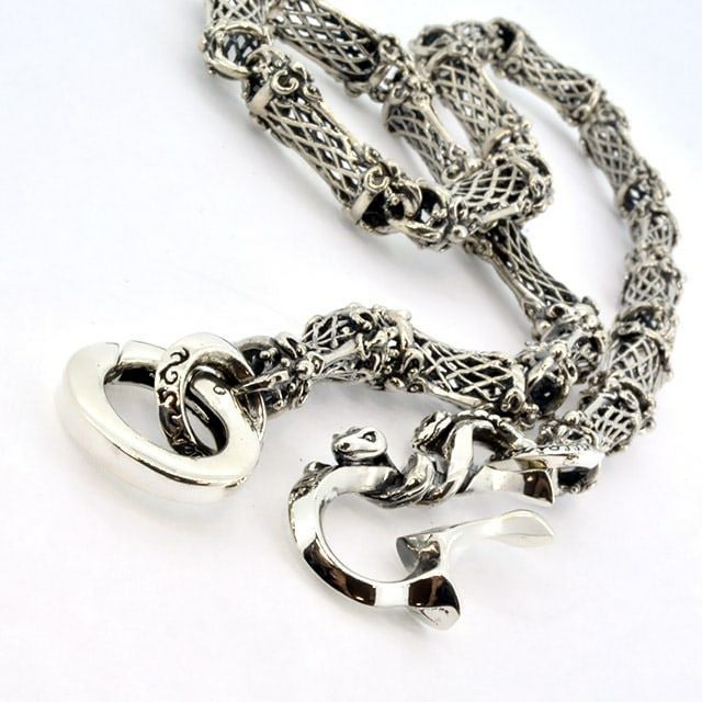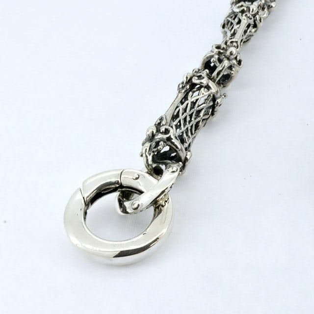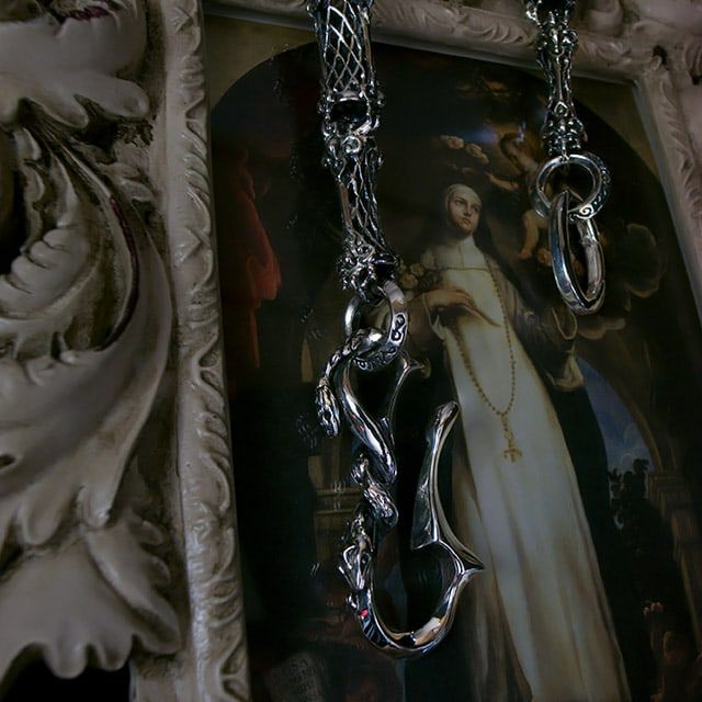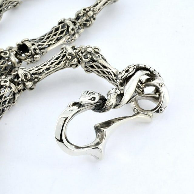 フックには3匹の絡まる蛇、パーツには繊細な透かしを用いた女性も使用しやすく軽量化したユニセックスなウォレットチェーン