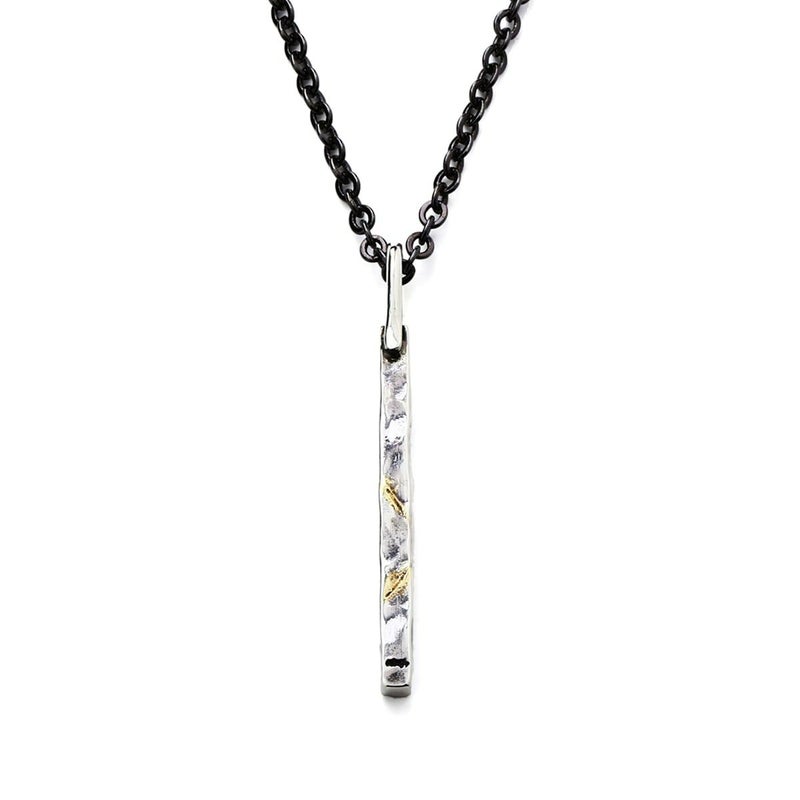 日本の陶器の伝統工芸【金継ぎ】をジュエリーで再現したシリーズです。あえてバラバラにしたボディを金蝋で繋ぐ事により、繋ぎ目とその周辺にはみ出たイエローゴールドがアクセントとなる、物を大切にする日本の心をデザインしたネックレスです。(全て手作業で金継ぎする為、個体差があります)