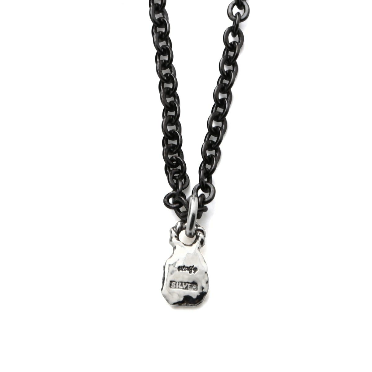 鎚目のクラフト感のあるベースにロゴを手打ち刻印したミニマムなチャーム。さらっとコーディネートやお手持ちのアクセサリーに重ね着けしたり便利なチャームです。