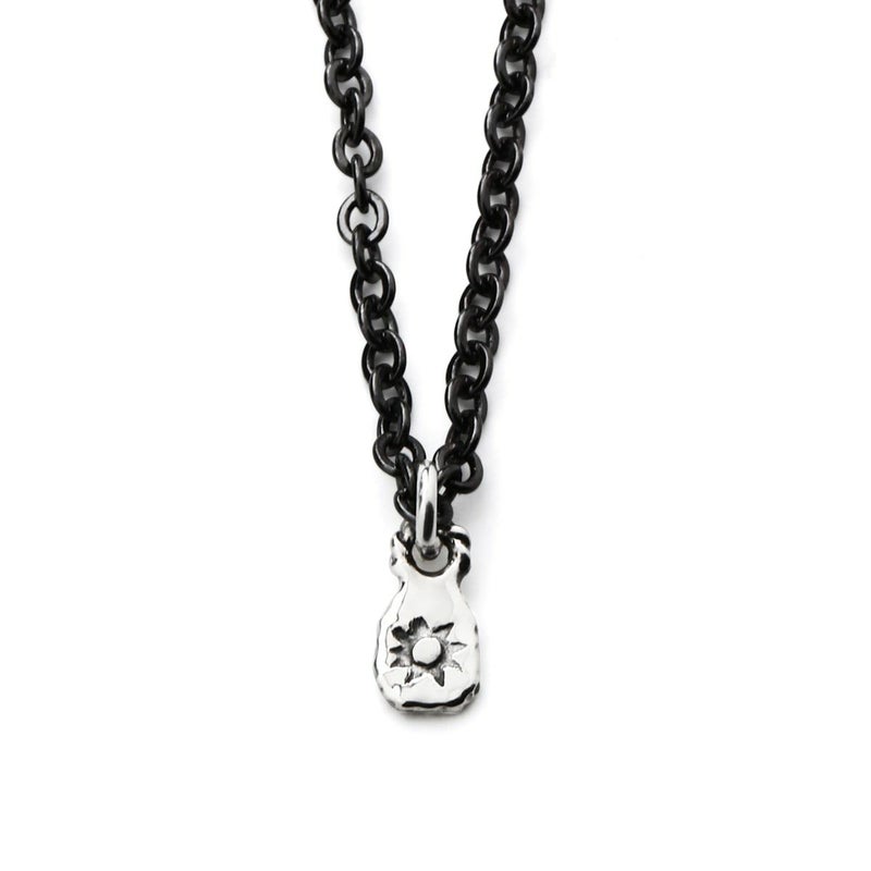鎚目のクラフト感のあるベースにロゴを手打ち刻印したミニマムなチャーム。さらっとコーディネートやお手持ちのアクセサリーに重ね着けしたり便利なチャームです。
