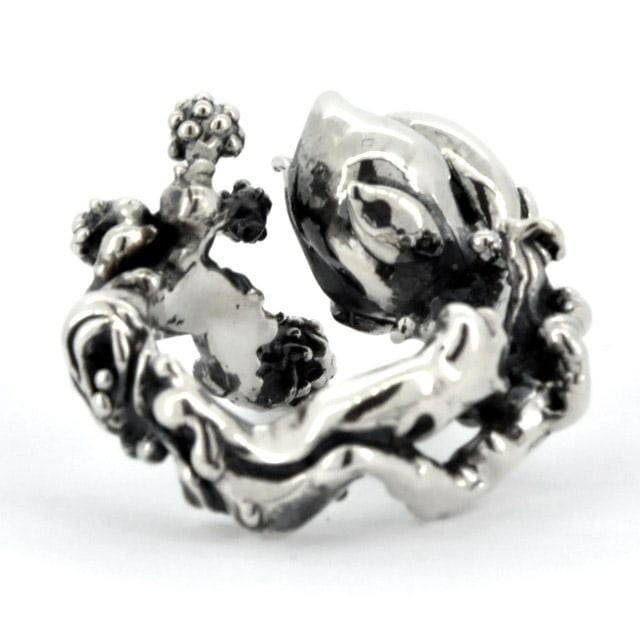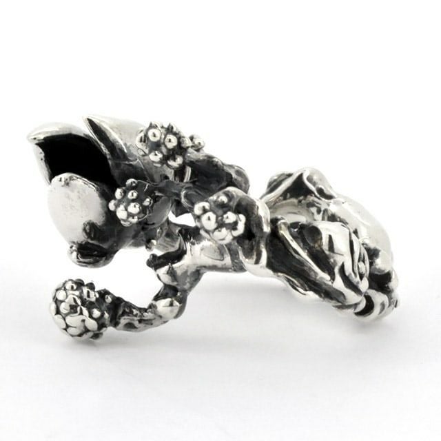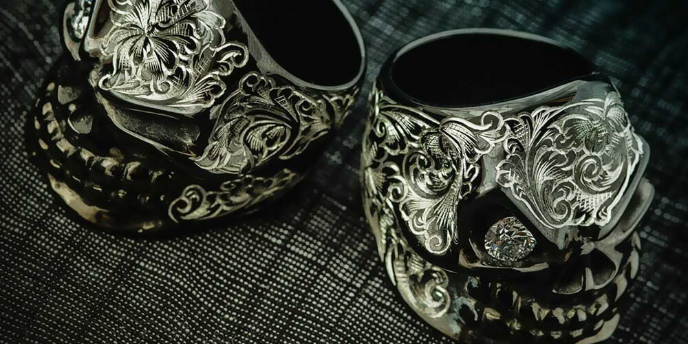 1997年、デザイナーであるRat Gjo(ラットジージョ)氏が自身の納得のいく究極のスカルを追求するために始動。自然というモチーフの中の究極の造形物の1つとしてスカルを捉え、その曲線やバランスに独自のデザインを落とし込む。また、リボン・フレア・スペードなどプロダクトは多岐に渡り、そのオリジナリティとクオリティに目を奪われがちだが、氏の追求する徹底した美学に裏打ちされた作品のフォルムが導き出すバランス感と装着感は圧巻。