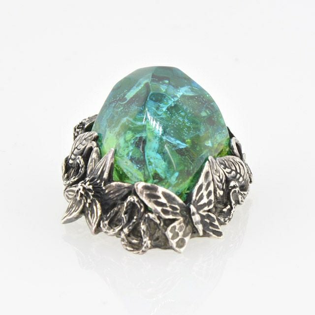 デザイナーはブランドの名前にもなっている、作家リリー・エルランドソン。霧に包まれた暗い森の中で創作活動に打ち込む等、謎に包まれた人物。作品は美しい有機物をモチーフに製作し、繊細さと緊張感を潜ませた佇まいを表現。 アイテム毎に少なからずの個体差が存在することも大きな魅力のひとつ。 商業ベースの活動は好まず、流通させるのはごく限られた数の作品のみ。現在、ジュエリーをメインに創作活動を行っているデザイナーについての情報は、国籍・性別などすべて非公表。神秘的なデザイナーが送り出すジュエリーには、「ユリ」を中心とした植物のモチーフが多く登場。色鮮やかで極彩色な合成ストーンは特殊な製法で生成されており、硬さの中に柔らかさや温かみが感じられます。滑らかで妖艶な光を放つストーンは、一つとして同じものはなく、着ける人を魅了する幻想的な光を放っています。