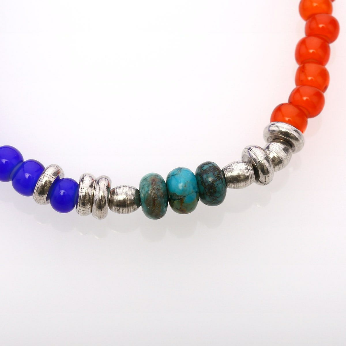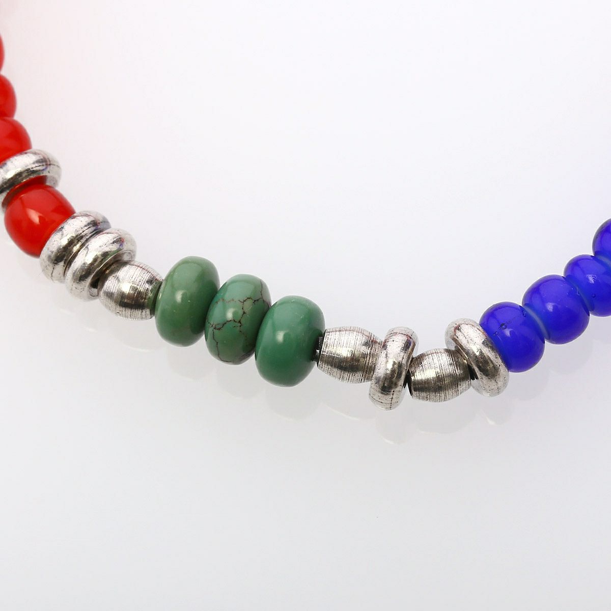 ホワイトハーツとターコイズ、メタルビーズを組み合わせたブレスレットになります。シンプルなデザインなので重ね付けにもおすすめです。