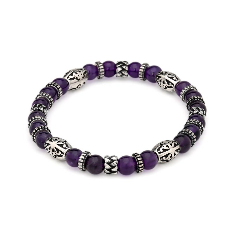 小振りサイズのシルバービーズに心を落ち着かせると言われるアメシストを組み合わせた、腕元のアクセントとして使いやすい6mm幅のストーンブレスレット。