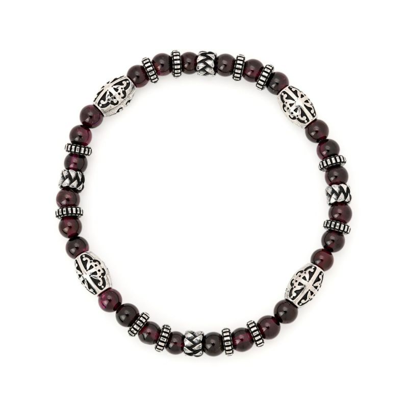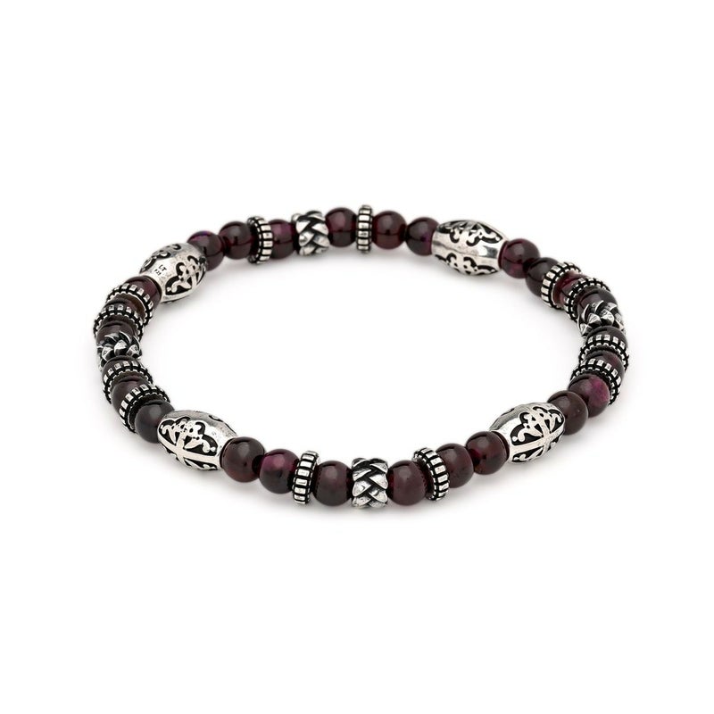 小振りサイズのシルバービーズに大切な人との絆を深めると言われるガーネットを組み合わせた、腕元のアクセントとして使いやすい6mm幅のストーンブレスレット。