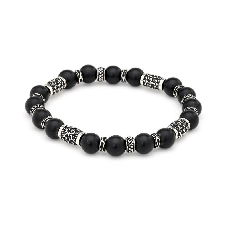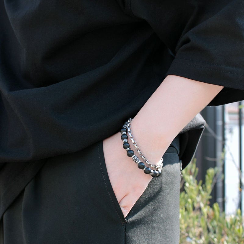 小振りサイズのシルバービーズにお守りとしての効果があると言われるマットオニキスを組み合わせた、腕元に程よい存在感を与えてくれる8mm幅のストーンブレスレット。