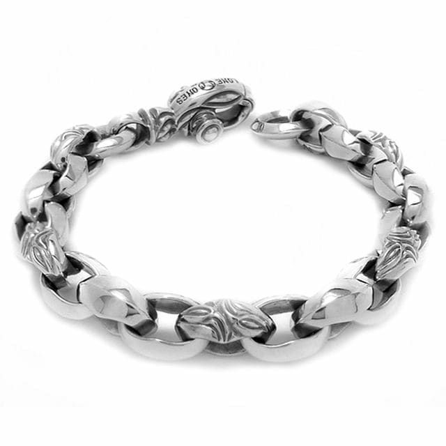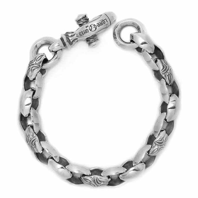 シルクリンクパーツの煌びやかな輝きはそのままに、間に鳥のデザインの彫刻を施したリンクを繋げたブレスレット。どの角度から見ても妥協の無いデザインを楽しめる。