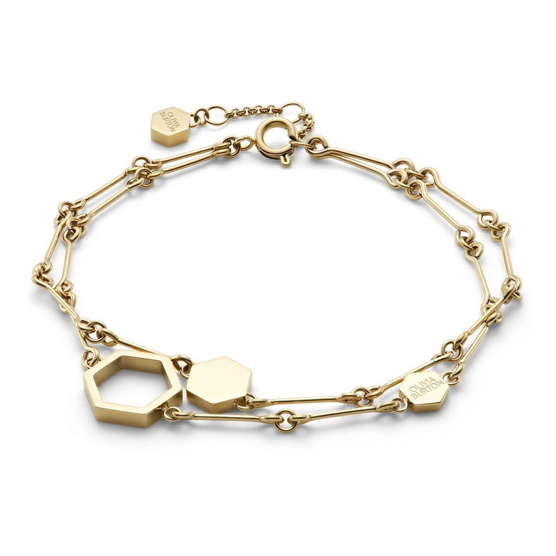 オリビア・バートン シグネチャー - ハニカム クラシック ダブル チェーン ゴールド ブレスレット