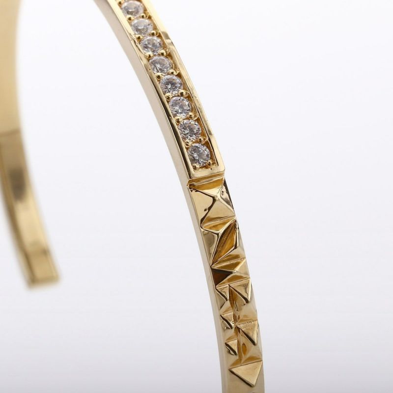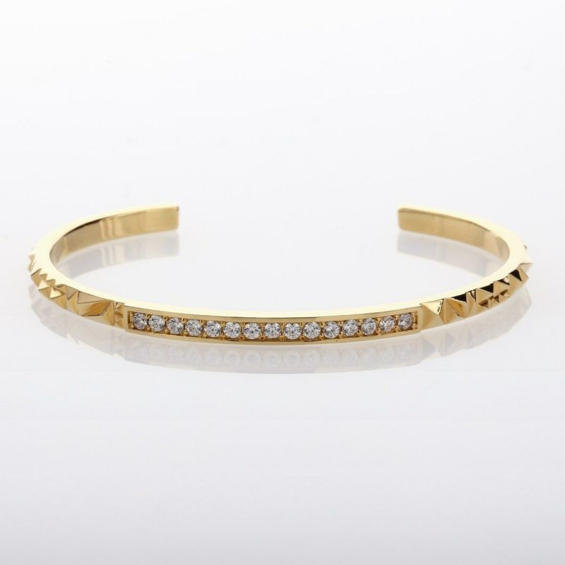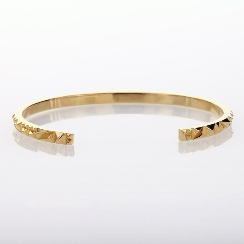 バングルの両サイドに、大小様々なピラミッドスタッズが配列されています。