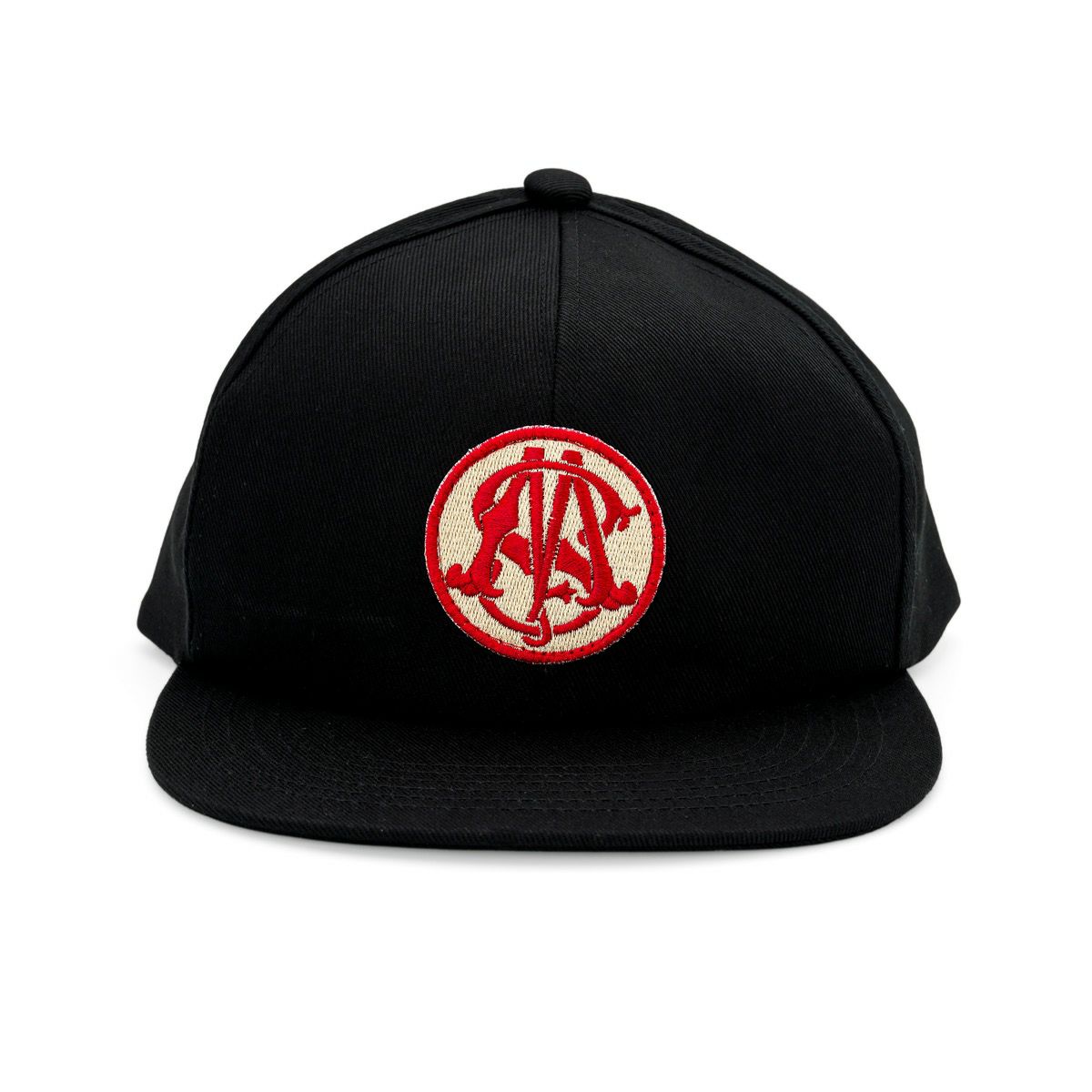 TC素材を使用したフルパネルキャップ。フロントにエンブレムモチーフのワッペンを叩きつけ。