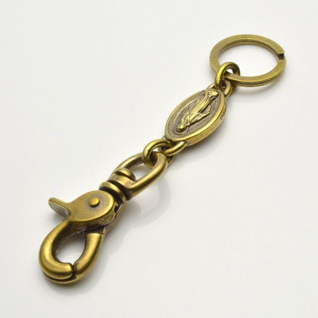 ボリュームのある両面マリアメダイが配されたキーホルダーになります。 マリアメダイのサイド部分には刻印も施されています。