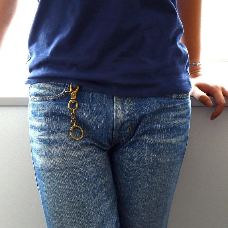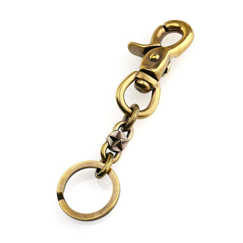 シンプルなチェーンのコマに、しっかり主張するスタースタッズを配置。使い勝手の良いキーチェーン。スターパーツの側面には刻印も施されております。