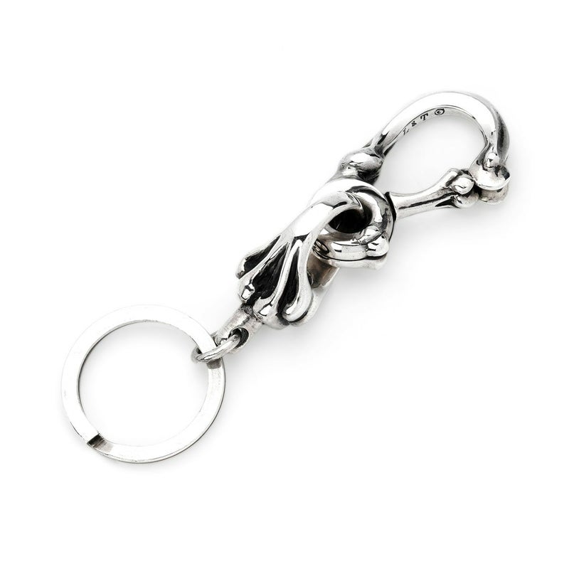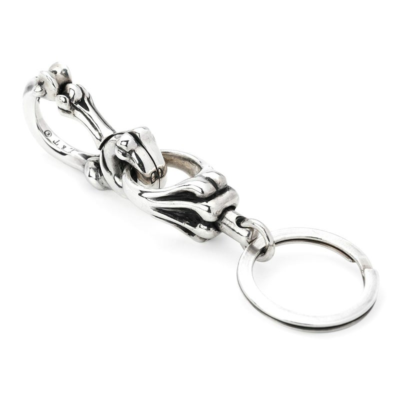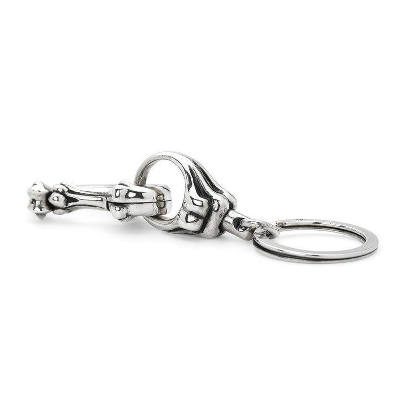 スタイルを選ばず様々なシーンで着用できる、ボーンモチーフを曲げたシンプルなキーチェーン。