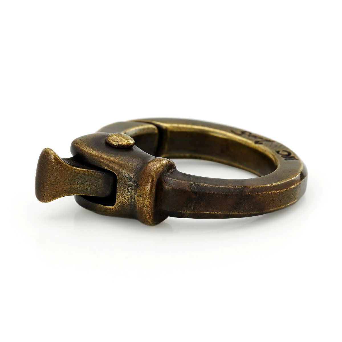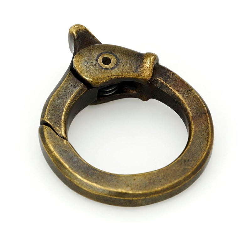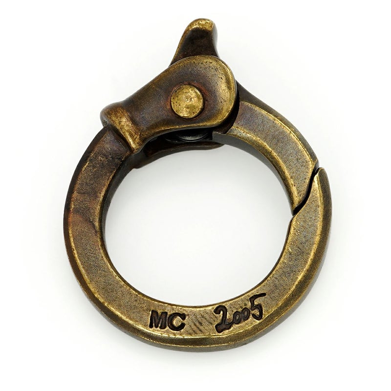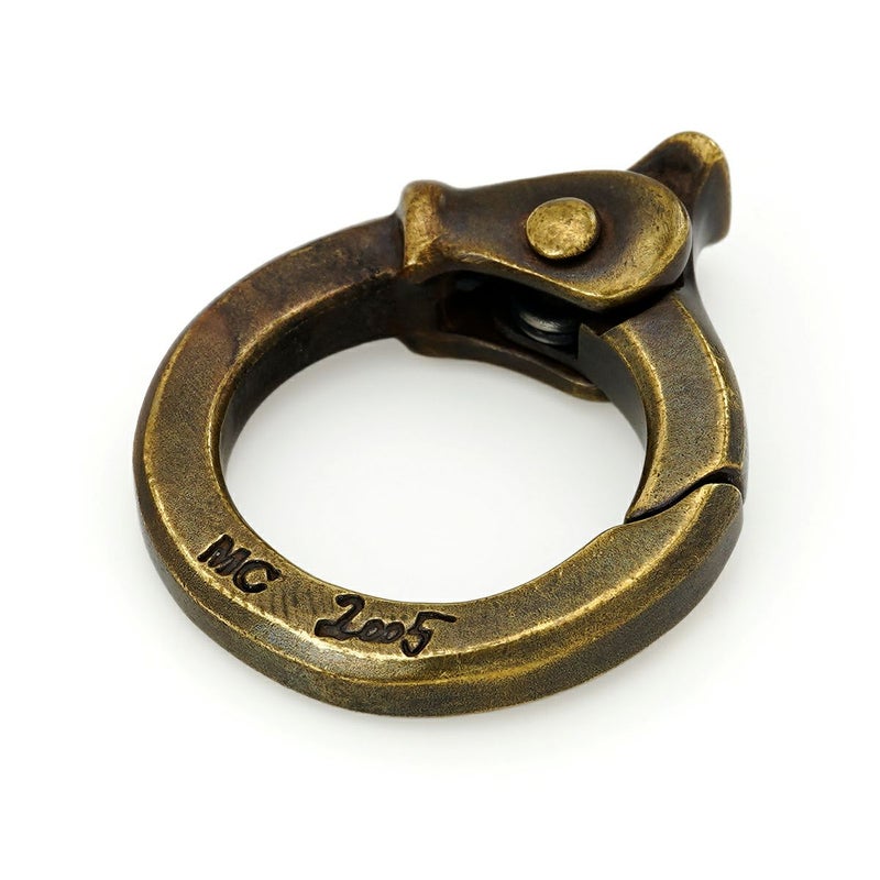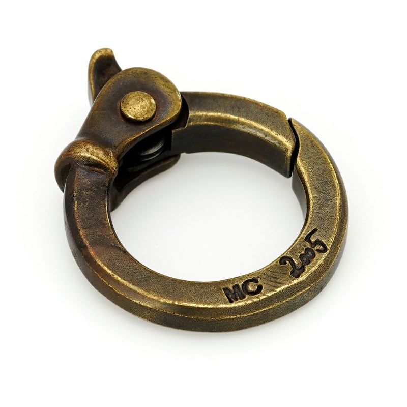 キーチェーンやペンダントなどにリンクして使用する、角型にエッジを効かせたブラス素材のカラビナ。