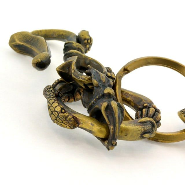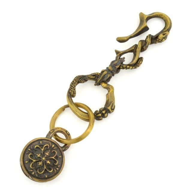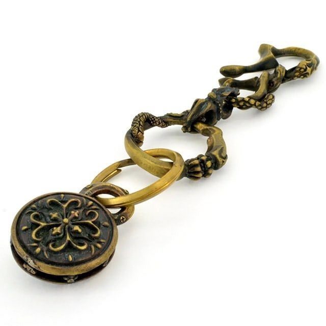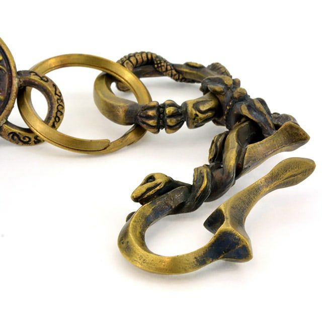 フックには3匹の絡まる蛇、リング部分には1匹の蛇・エンブリマの両面デザインの入ったパーツのついたフックキーリング