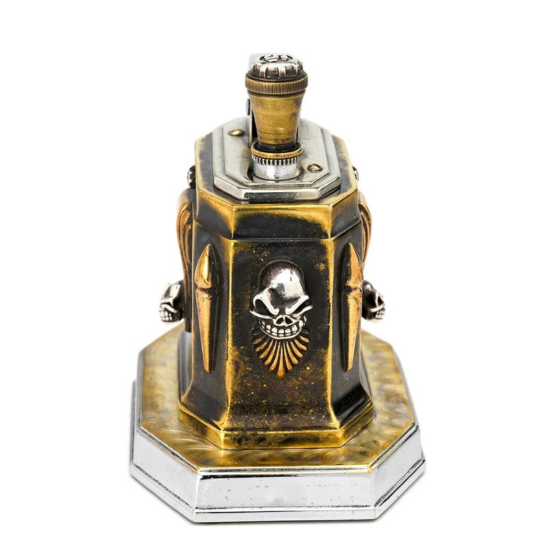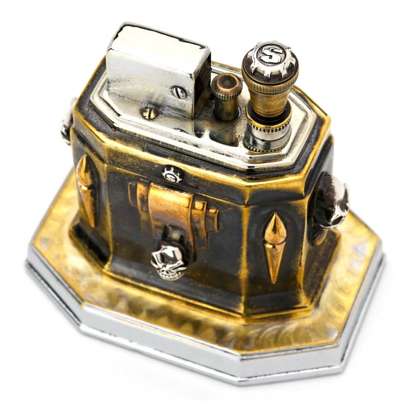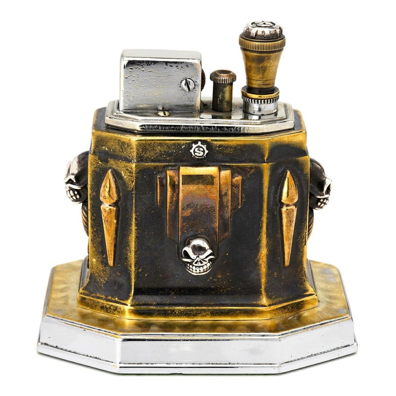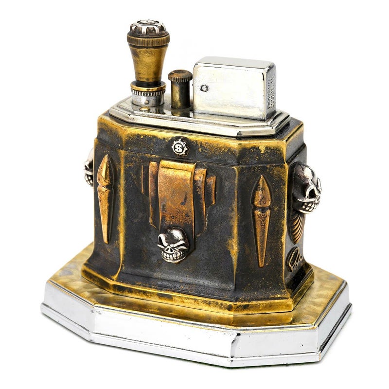 【限定】 スターリンギア 1930年製アンティーク卓上ライターw/シルバー2マイクロスカル&2タイニースカル&Sギアロゴ/ブラスアンティークパーツ