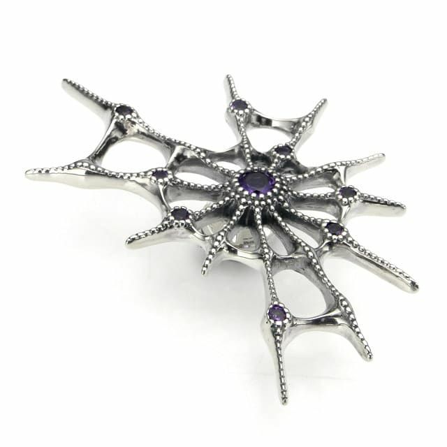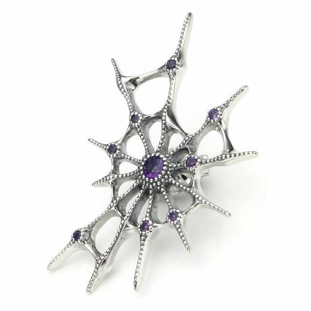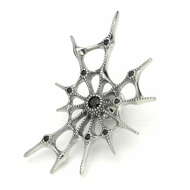 蜘蛛の巣をモチーフにしたラグジュアリーなピンバッジです。大きさによるインパクトがあり、ペンダントが着けられない服装でもラペルピンや帽子などいろいろな用途で使用して頂けます。