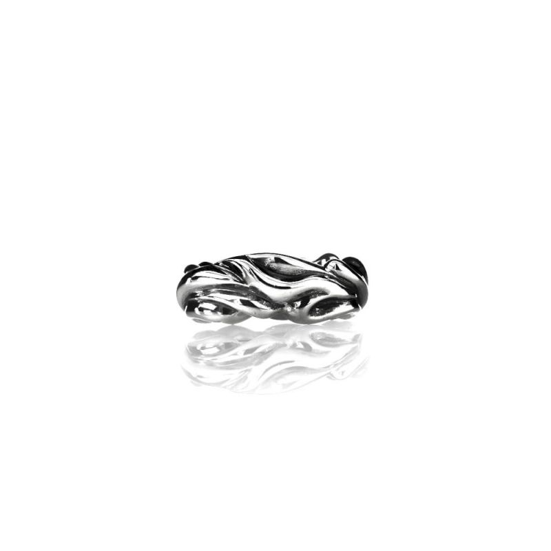 感覚的デザインの高低差にいぶしを施すことで、流麗な輝きと共に、柔らかく、時に鋭さをも感じさせる立体的アイテム。