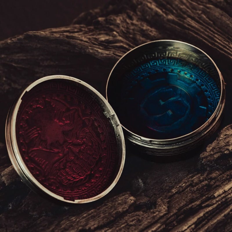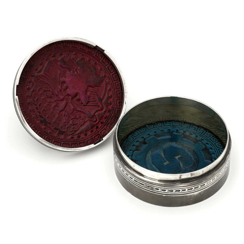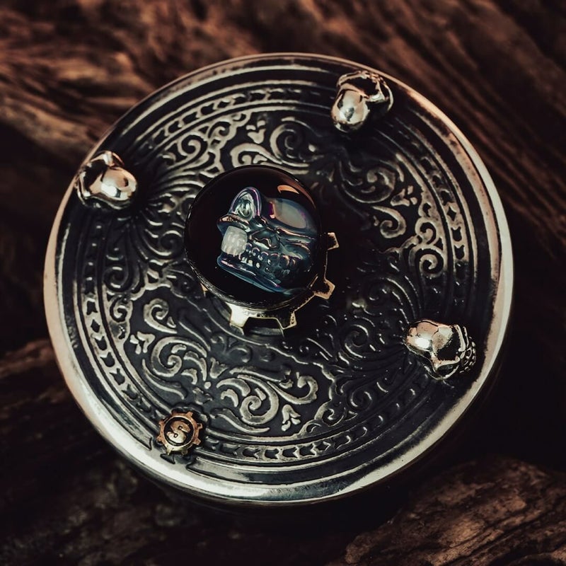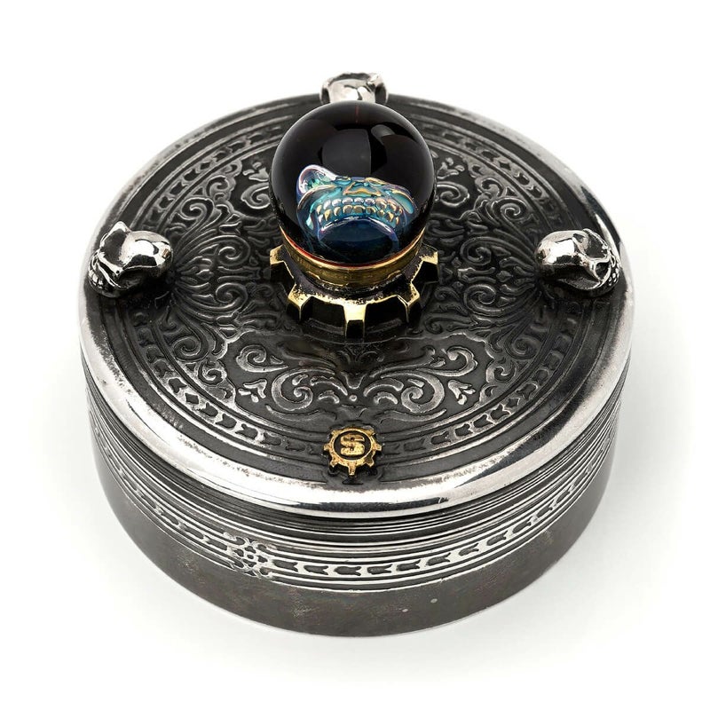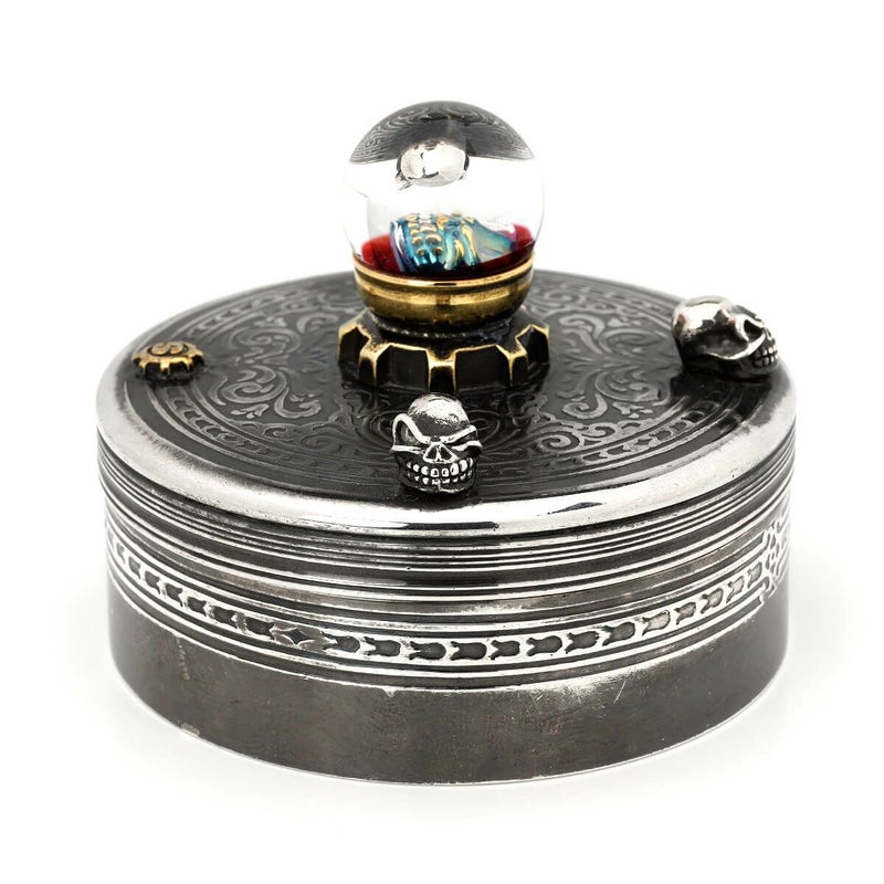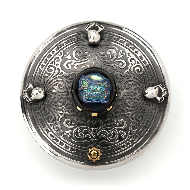 【限定】 スターリンギア 1915年製アンティークシルバーTIFFANY&COラウンドケース w/ニュースカルマーブル/3シルバータイニースカル/ブラスSギアロゴ/インサイドレザーマットレッドスリックスター&ブルーSギアロゴ