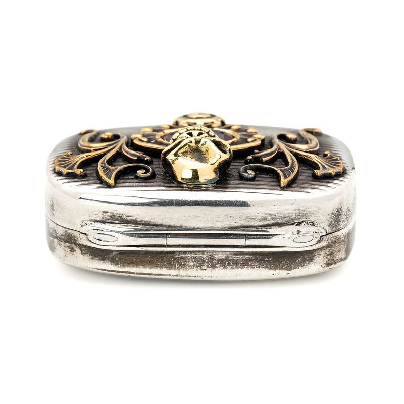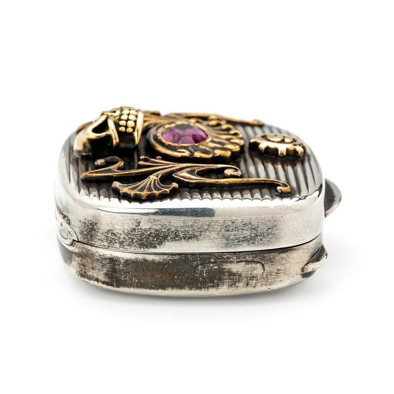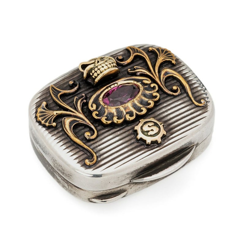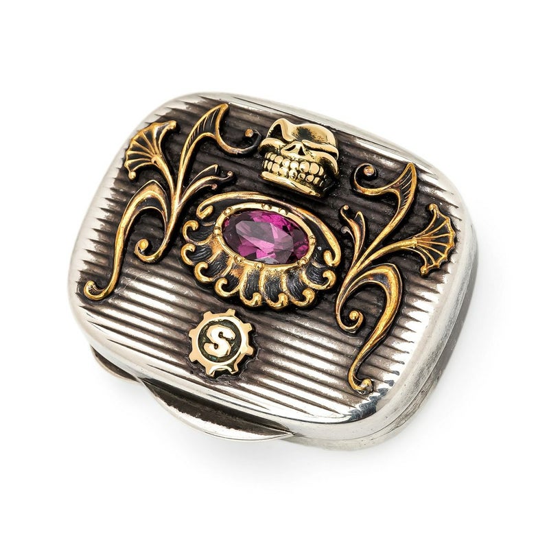 【限定】 スターリンギア 1920年製アンティークシルバーTIFFANY&COピルボックス w/k18ミニスカル&Sギアロゴ/ブラスアンティークパーツ/スペシャルカットロードライトガーネット