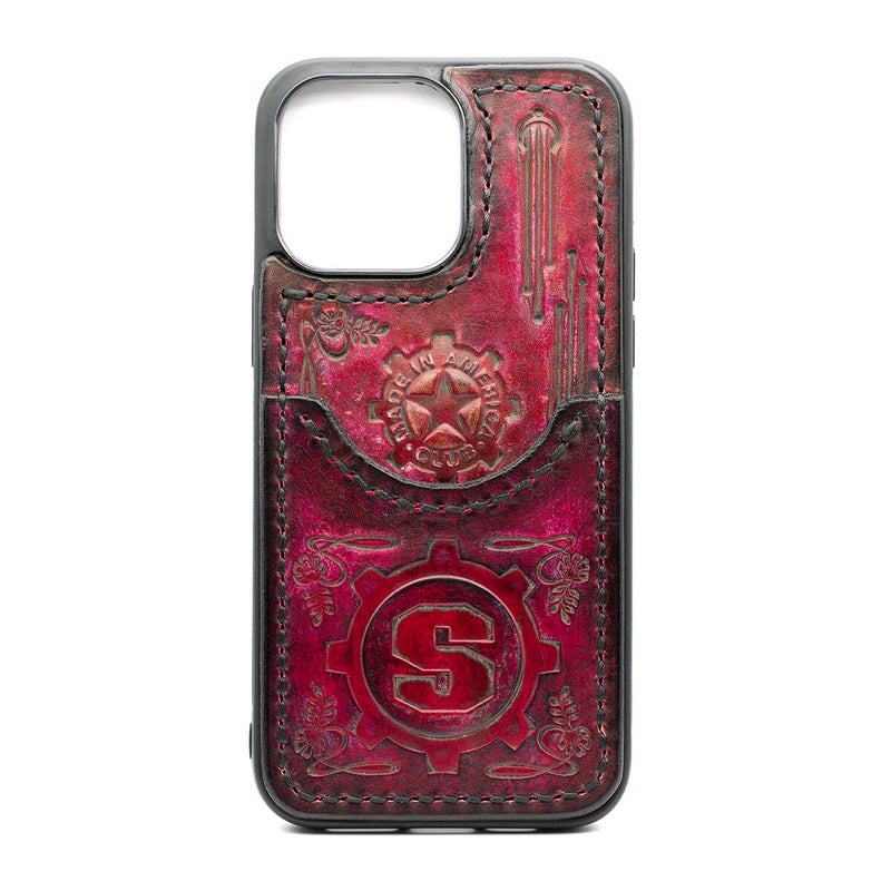 【カスタム】 スターリンギア ワンオフニューレザーフォンケースw/ポケット&マルチエンボス レッド s000117351(iPhone14ProMax対応)