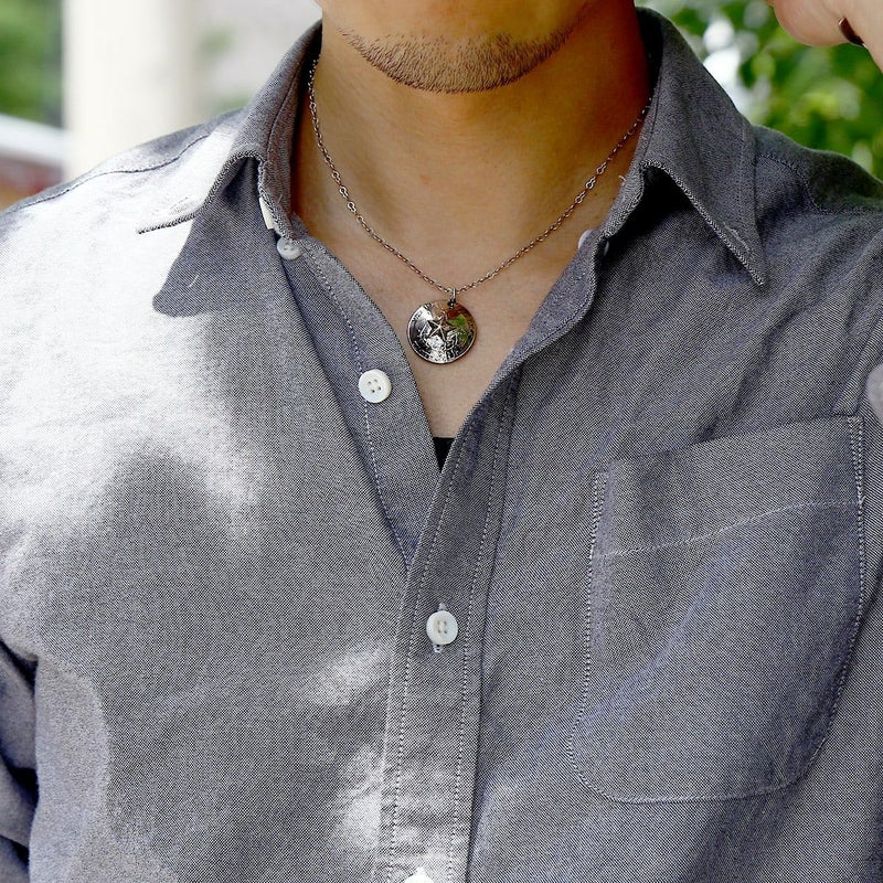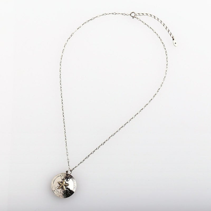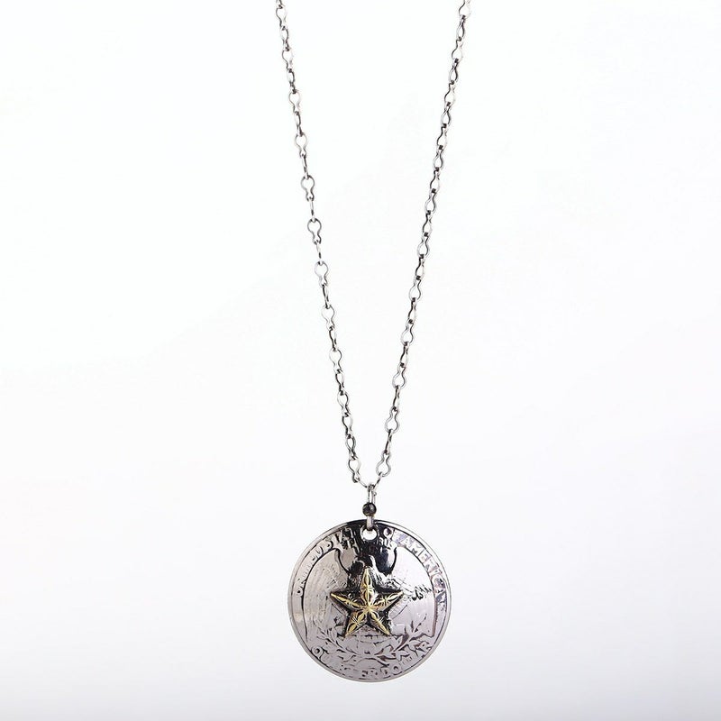 USクオーターコインをコンチョ型に形成し、表面に彫りを施した真鍮製スターをロウ付けしたネックレス。