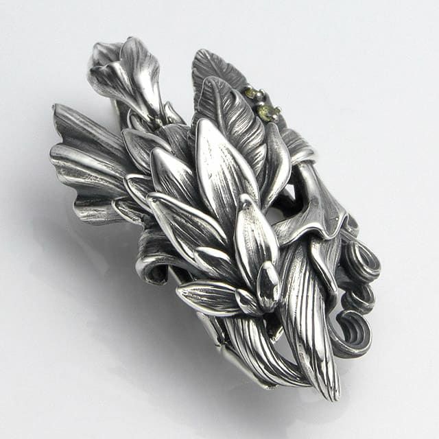 モチーフ:極楽鳥の羽、魚のヒレ、植物の葉と蔓、コウモリの羽