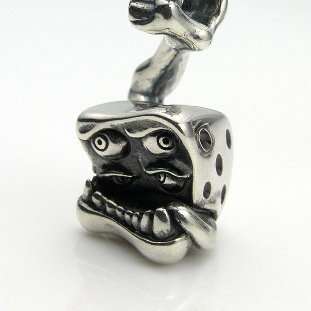 サイコロのモンスターペンダント。正面は賽の目に合わせ、4つの目玉がある。バチカンまで含めキャラクターになっており、シュールで秀逸な造形とデザイン。