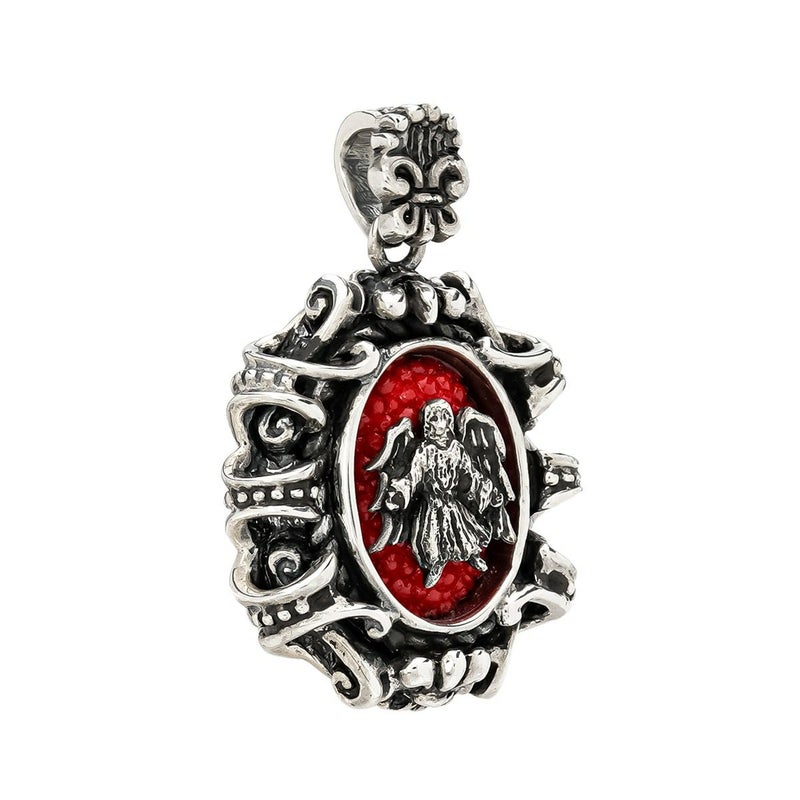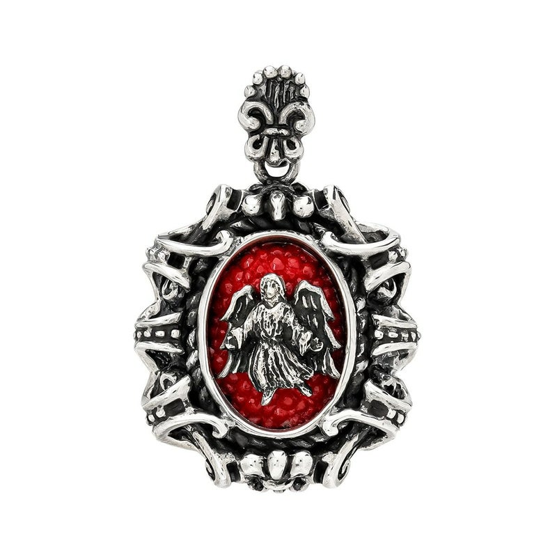 ローマ教皇に捧げるデザインとして作られたポープスインレイリングのデザインを基に、小振りのペンダントとして再構築されたアイテムです。