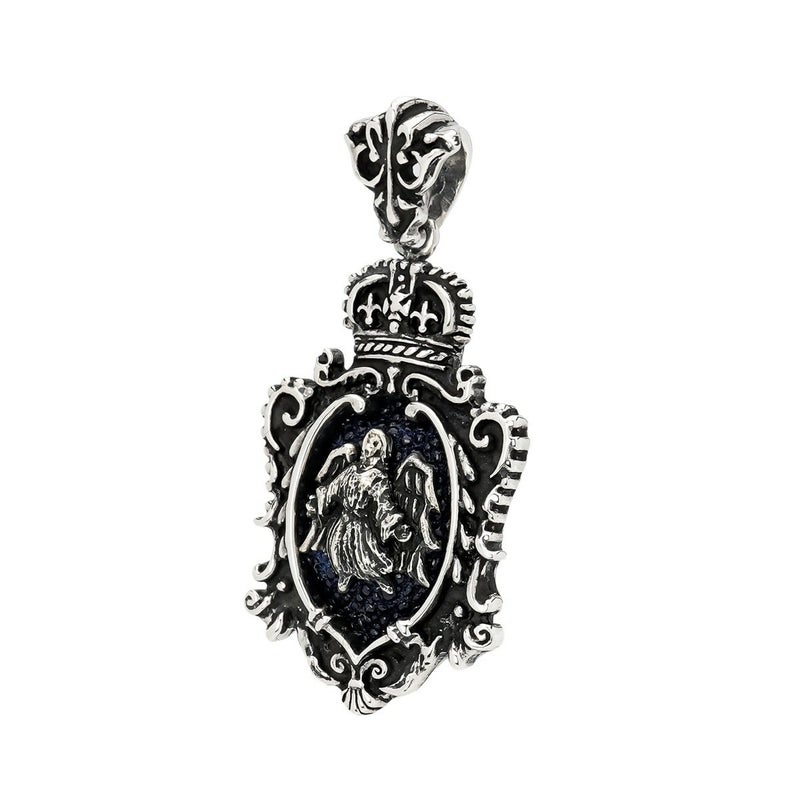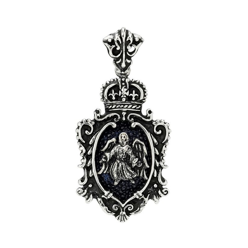 レザーズアンドトレジャーズ スモールキングクラウンクレストインレイペンダント w/ガーディアンエンジェル w/スティングレイ(レザーカラー選択可能)