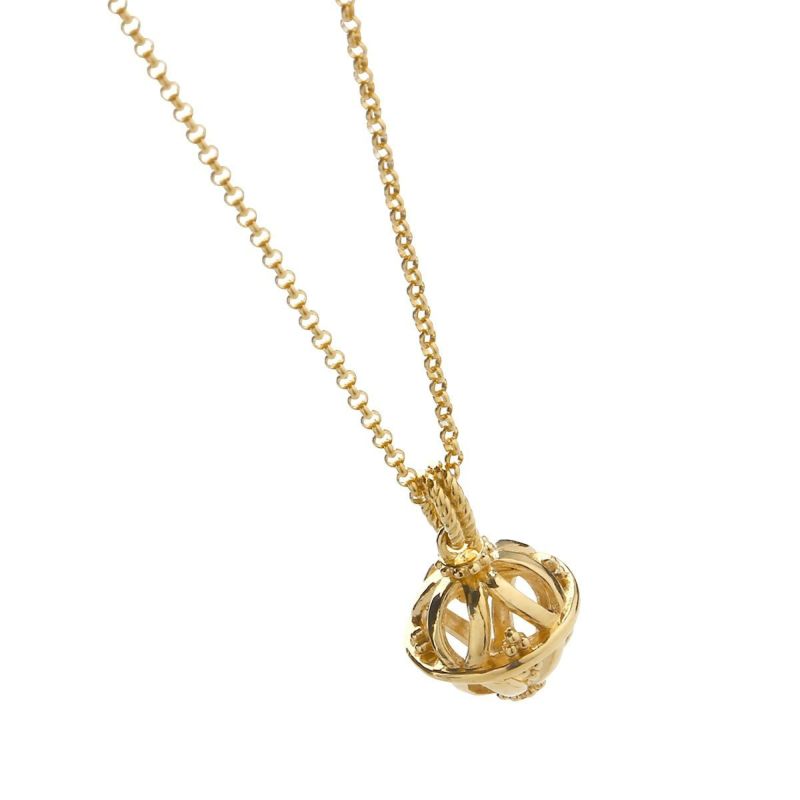 宮中に明かりを灯す紅くて丸いランタンをイメージ。360°立体的に仕上げられているので、コロンとしたマルイフォルムに直線と曲線が交差する様が美しく、透かし彫りですので重たい印象はありません。シルバーとゴールドカラーの2色展開にチェーンの長さ2種類からお選びいただけます。