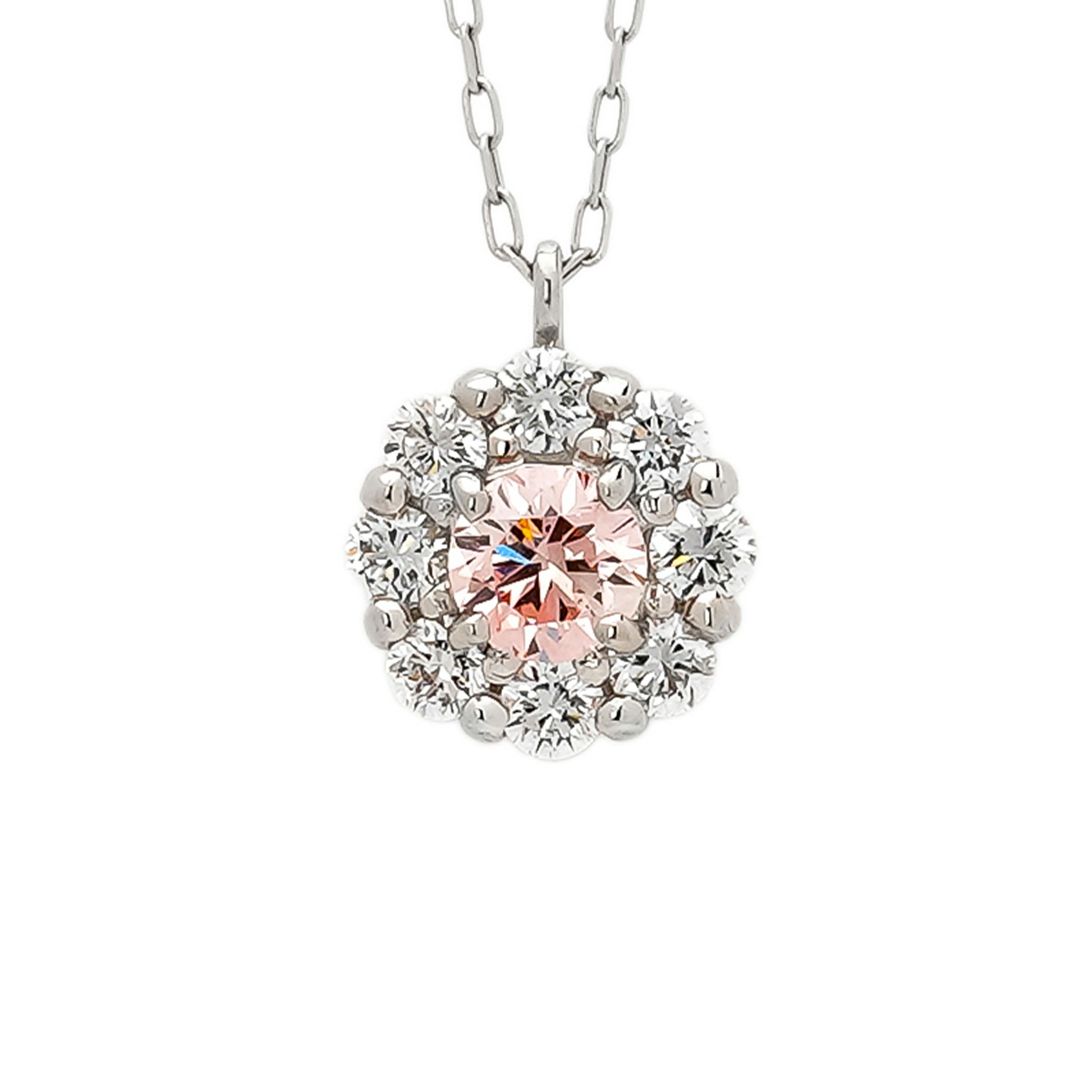 可憐な色合いが魅力的なピンクのラボグロウンダイヤモンドと、透明感のあるラボグロウンダイヤモンド8石の2色のラボグロウンダイヤモンドを組み合わせたネックレスです。