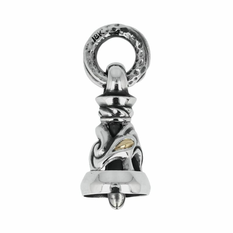 鳩をモチーフにしたベルペンダント。細部まで拘った造形美と独特の音色が特徴的な、ロンワンズを代表するペンダント。目部分の素材をローズゴールドにする事でメリハリと高級感をプラス。